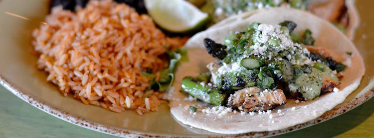 If you're a veggie-lover, tacos can be a bit trickier to find. Not so at Mad Mex. The shiitake and asparagus tacos are loved by vegetarians and meat-lovers alike, and come in a trio with marinated mushroom caps, freshly grilled asparagus, goat cheese, cilantro cream and pea tendrils. The margarita specials are also notable, including strange but delightful flavors like strawberry banana and pear.