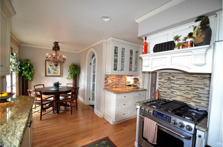 This stunning home in Canton is as beautiful inside as it is outside — just look at this kitchen! The white cabinetry works off of the neutral backsplash, which complements the granite countertops. A warm hardwood floor brings it all together for an eclectic yet inviting look!