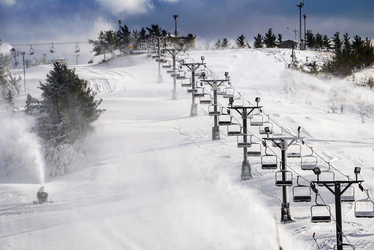 Traverse over more than 80 acres with 15 trails ranging from beginner to expert, all of which are open for night skiing. The area gets less natural snowfall than Alpine Valley, but fear not — there is plenty of manmade snow to fully cover the trails.