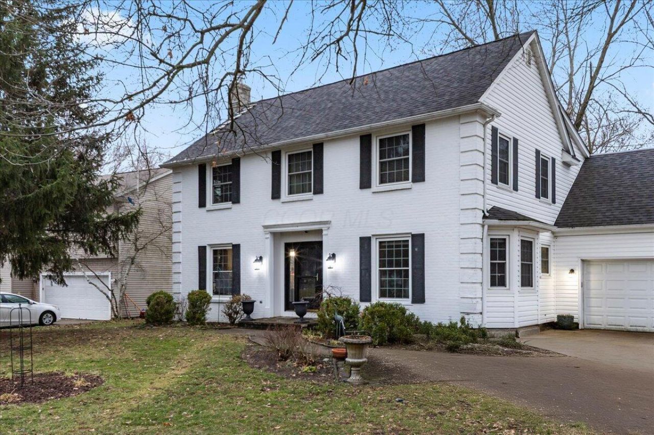 Yes it's true! The white house on Clotts with the gorgeous landscaping, is for sale! Step into timeless elegance with this stunning Colonial home, where classic charm meets modern comfort. Boasting a traditional layout that flows seamlessly from room to room, this impeccably maintained residence offers an abundance of space for family living and entertaining. Rich cherry woodwork gleams throughout, adding warmth and sophistication to the formal living and dining areas--complete with a cozy fireplace in the living room--while the updated spacious kitchen, with an adjacent versatile bonus space that can be customized for anything you need, such as a home office, playroom, or extra pantry. The family room, featuring its own inviting fireplace, provide the perfect backdrop for everyday gatherings and has a patio door leading to the deck. Upstairs, generous bedrooms ensure privacy and relaxation, complemented by ample storage and a versatile bonus space off the principal suite. Downstairs, the finished basement serves as an additional hangout space for the family, ideal for movie nights, games, or casual relaxation. Nestled in a desirable neighborhood, this move-in-ready gem is a true testament to quality craftsmanship. And as spring and summer arrive, you'll be greeted with an unending show of gorgeous perennials popping up everywhere! Minutes to shopping, schools, parks, Creekside, John Glenn International Airport, freeway access and Easton! Schedule your private tour today! (Please note the equipment next to the drive is for the final finish on the chimneys. The stucco covering needed redone, and was cosmetic.)